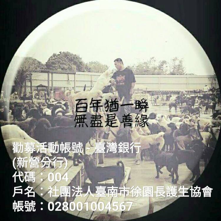 園區位於台南,長期不斷的搶救收容所的死刑犬和救援在外生病和受傷的狗狗,目前已經有三千多個孩子,龐大的飼料罐頭和醫療支出,希望大家一起來幫忙,做園區最堅強的後盾。